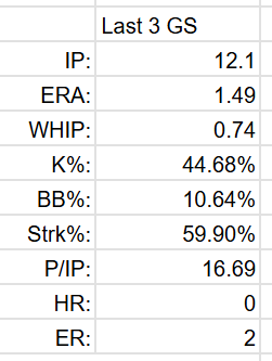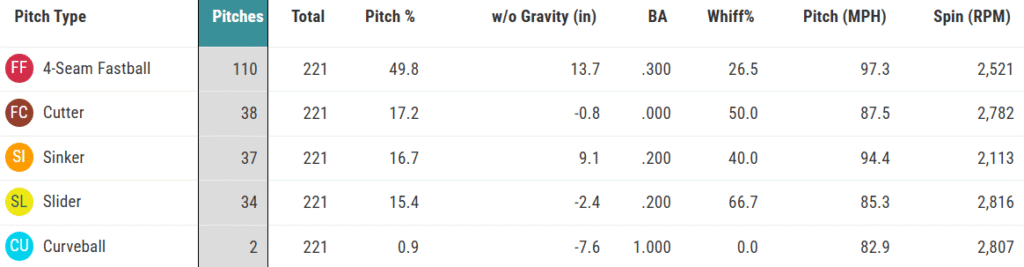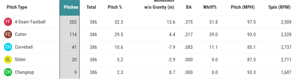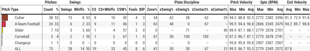 Wondering if the cutter usage has been up like it was this outing, here’s the pitch mix over his last three: